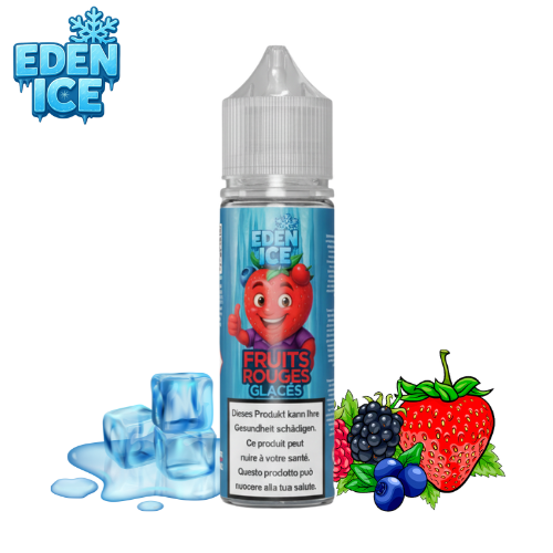 Eden Ice Fruits Rouges Glacée, Un mélange savoureux de fruits rouges juteux et sucrés, sublimés par une fraîcheur glaciale intense. Un équilibre parfait entre douceur fruitée et sensation givrée, pour une vape désaltérante et pleine de peps.